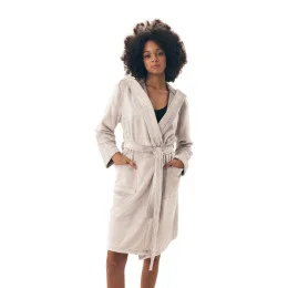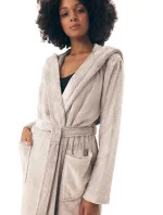 Dámský župan 42877 Brid grey HENDERSON - šedá barva - z vysoce jakostního měkkého materiálu - dlouhé rukávy - s kapsami - s kapucí - zavazování v pase na pásek