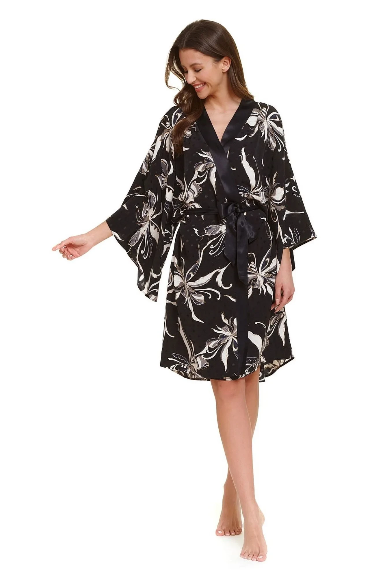 Dámský župan 5210 Doctor nap - vyrobený z velmi kvalitního a příjemného materiálu - černá barva se vzorem - s kapsami - vázání v pase - délka nad kolena