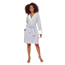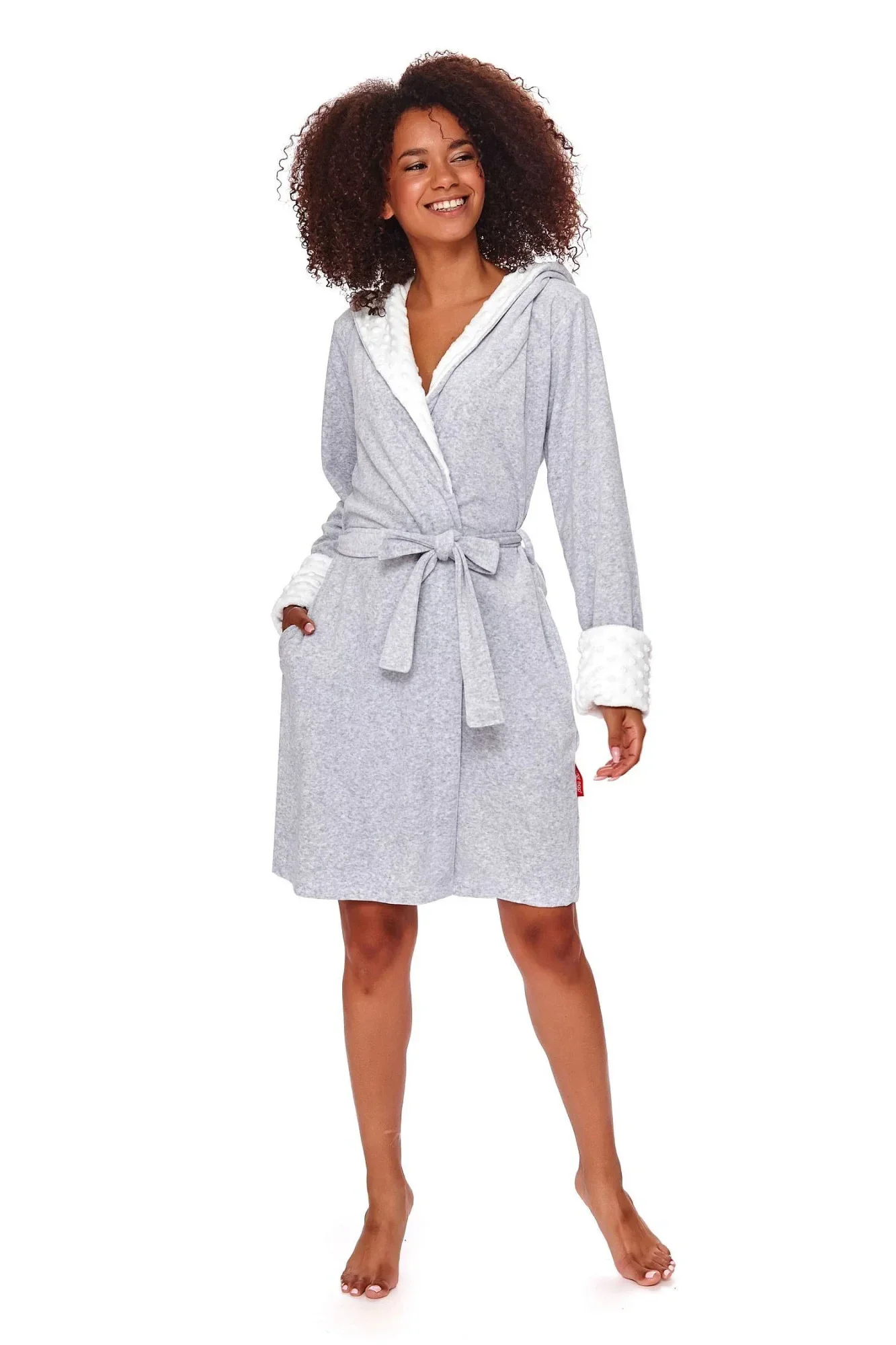 Dámský župan 7059 grey Doctornap - šedá barva - vyrobený z velmi kvalitní a příjemné bavlny - bílý široký límec - s kapucí - s kapsami - na zavazování v pase - délka nad kolena