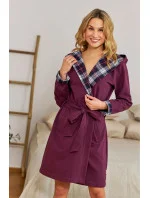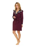 Dámský župan 7106 Doctornap - vínová barva - z vysoce jakostní bavlny - dlouhé rukávy - pohodlné kapsy na bocích - s kapucí - lemy rukávů a límec z károvaného materiálu - zavazování na pásek - certifikát OEKO-TEX Standard 100