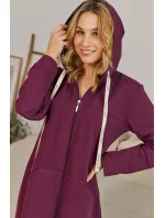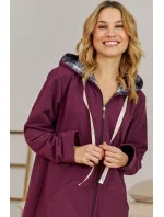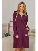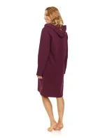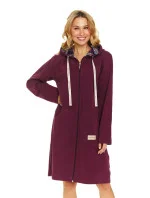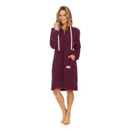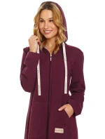 Dámský župan 7107 Doctornap - vínová barva - z vysoce jakostní bavlny - dlouhé rukávy - pohodlné kapsy na bocích - zapínání na zip - s kapucí - šňůrky s logem na stahování - certifikát OEKO-TEX Standard 100