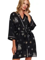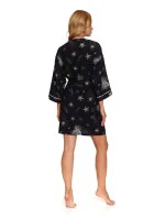 Dámský župan 7179 Doctornap - černá barva - z vysoce jakostní viskózy - se vzorem - tříčtvrteční rukávy - kimonový střih - s kapsami - zdobené efektním lemem - délka nad kolena - certifikát OEKO-TEX Standard 100