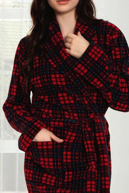 Dámský župan 9105 červené káro - CoCoon