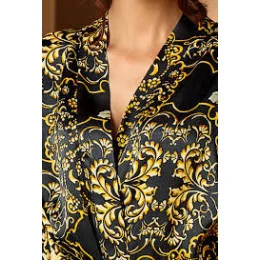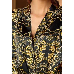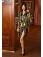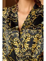 Dámský župan ALC2007 Lise Charmel- je luxusní černý župan s zlatými ornamenty, který působí velmi elegantním dojmem. Je vyroben z pravého hedvábí , který se velmi příjemně nosí.