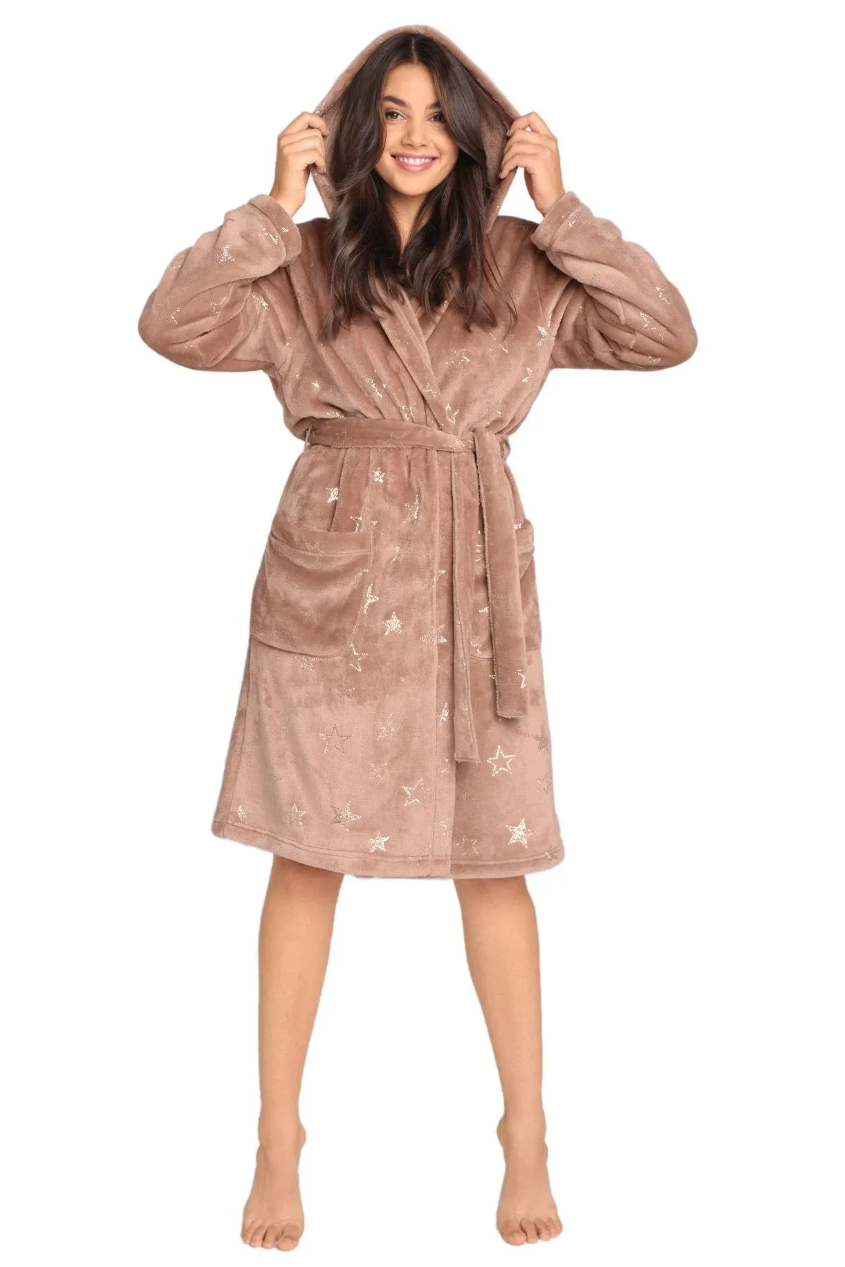 Dámský župan Arte plus ITALIAN FASHION - béžová barva - vázání v pase - kapsy na bocích - příjemný a lehký materiál