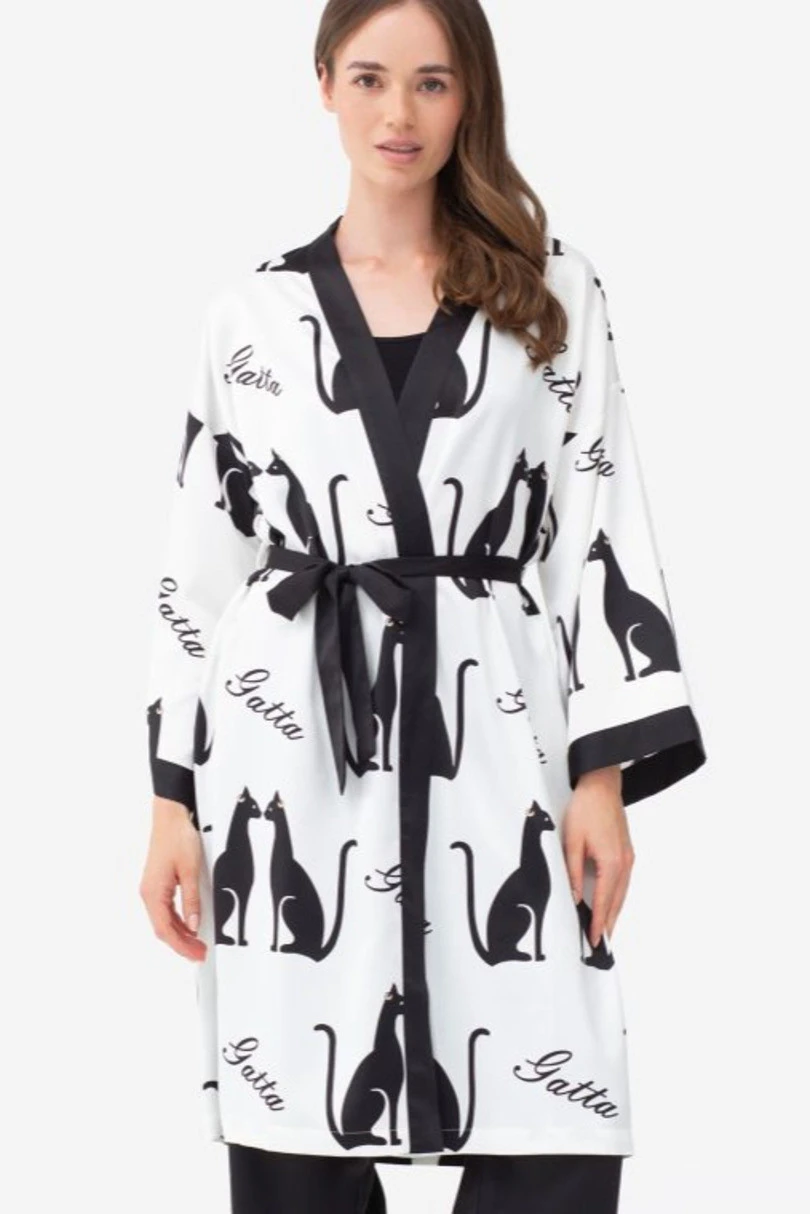 Zabalte se do výjimečného pohodlí s dámským županem Gatta Bodywear CATWALK. Tento elegantní model zaujme moderním designem s motivem černých kočekókteré mu dodávají jedinečný charakter. Lehký, mírně lesklý materiál z kvalitního polyesteru poskytuje měkkost, pohodlí a perfektně padne pro každodenní relaxaci. Klasické zavazování v pase zvýrazňuje siluetu a umožňuje nastavit šířku podle vašich preferencí. Je ideální volbou pro ženy, které doma ocení styl, pohodlí a dotek smyslné elegance.