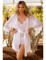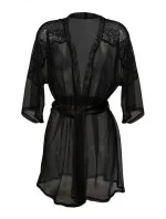 Velmi ženské splývavé negližé z černého elastického tylu, které lehce přiléhá k tělu, s krajkovými vsadkami na ramenou a černým saténovým zavazováním v pase. Plné krásy a půvabu! Složení: 100% polyester.