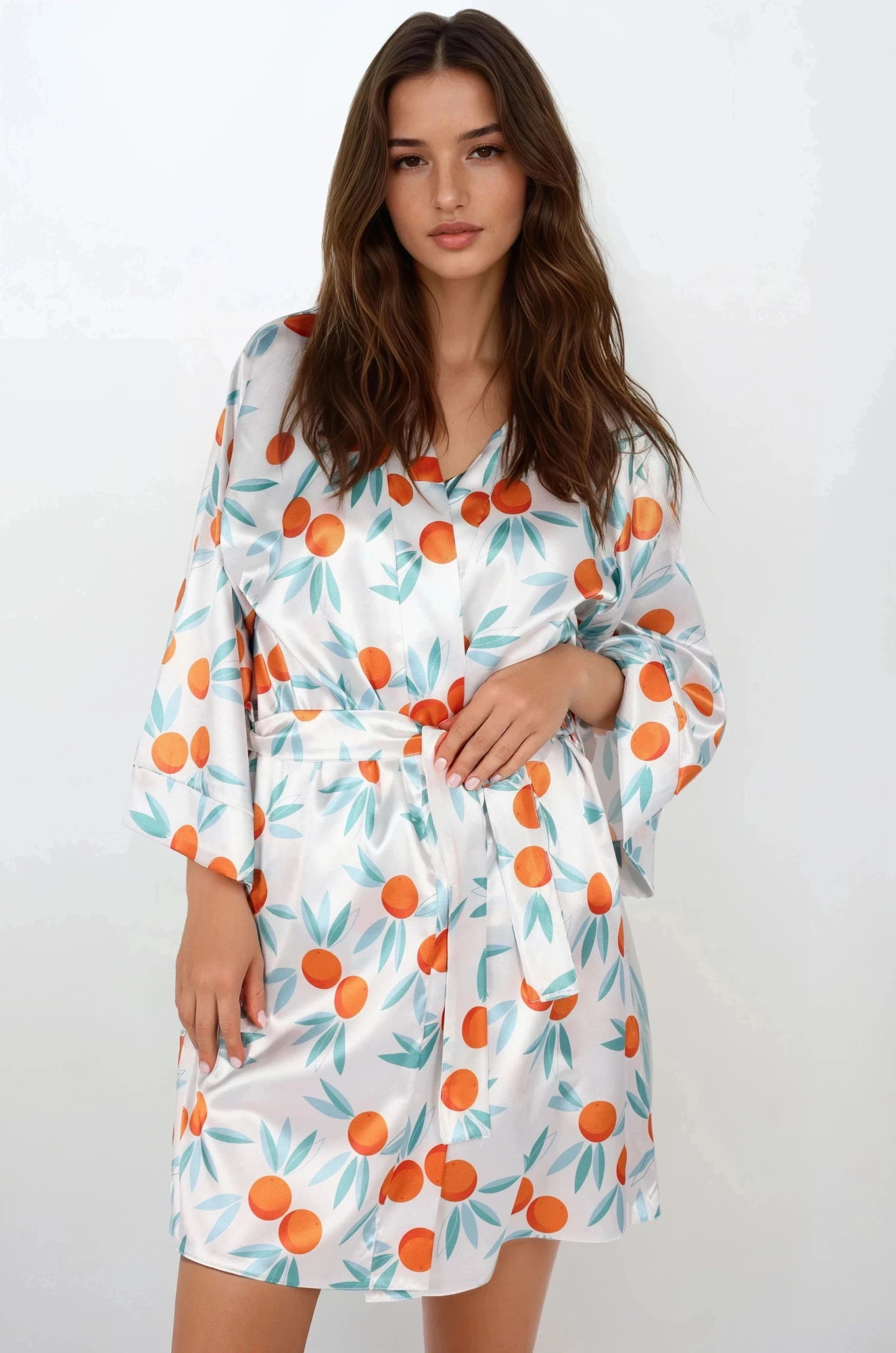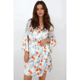 Máte chuť na nádech exotiky a středomořského léta po celý rok - objednejte si toto krásné saténové negližé. Měkké a saténové, zavazované v pase, se bude skvěle hodit do vašich domácích lázní. složení: 100% polyester.
