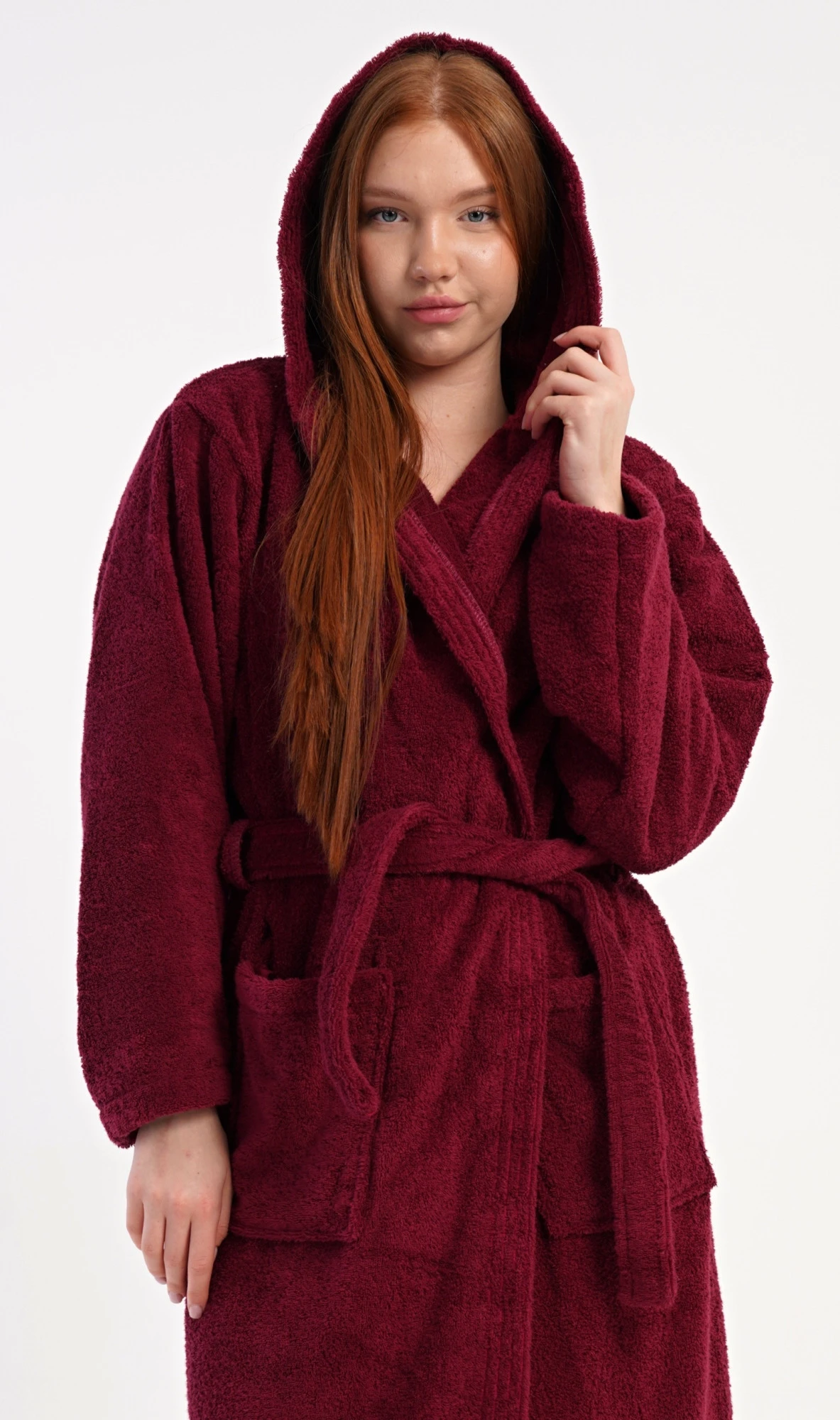 Dámský bavlněný froté župan s kapucí Julie. Dámský dlouhý župan s kapucí a páskem ke stažení je vhodný po koupeli i na povalování se doma na gauči. Froté župan má praktické kapsy, které oceníte při návštěvě wellness. Použitý bavlněný materiál je příjemný a poddajný na dotek.