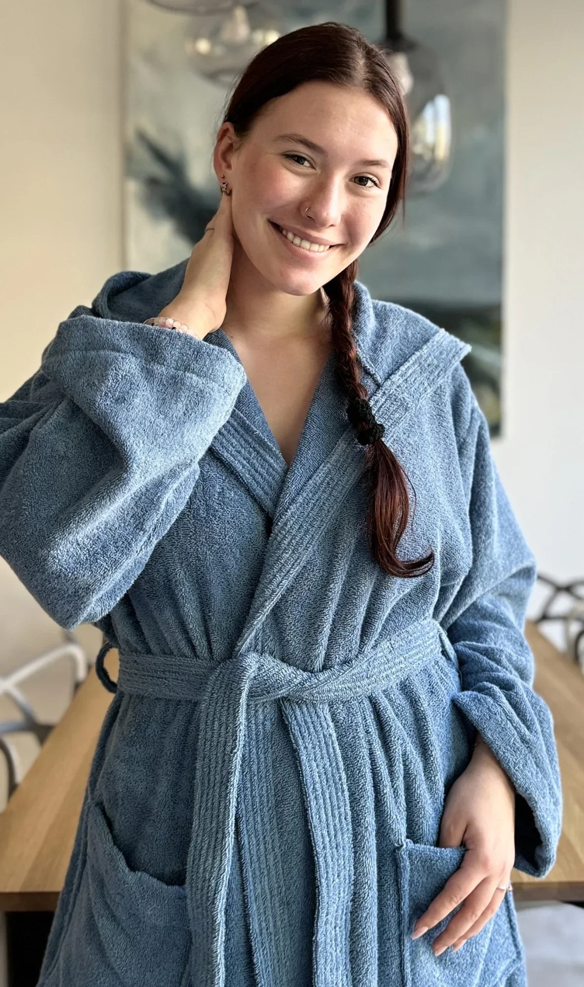 Dámský bavlněný froté župan s kapucí Klára. Dámský dlouhý župan s kapucí a páskem ke stažení je vhodný po koupeli i na povalování se doma na gauči. Froté župan má praktické kapsy, které oceníte při návštěvě wellness. Použitý bavlněný materiál je příjemný a poddajný na dotek.