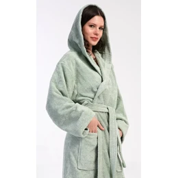 Dámský bavlněný froté župan s kapucí Lesní víla. Dámský dlouhý župan s kapucí a páskem ke stažení je vhodný po koupeli i na povalování se doma na gauči. Froté župan má praktické kapsy, které oceníte při návštěvě wellness. Použitý bavlněný materiál je příjemný a poddajný na dotek.