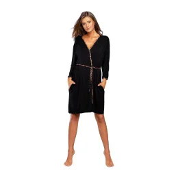 Dámský župan Eila ITALIAN FASHION - černá barva - vyrobený z velmi kvalitního materiálu - s dlouhými rukávy - zavazování na pásek - lemy v leopardím vzoru - na bocích jsou kapsy - délka nad kolena