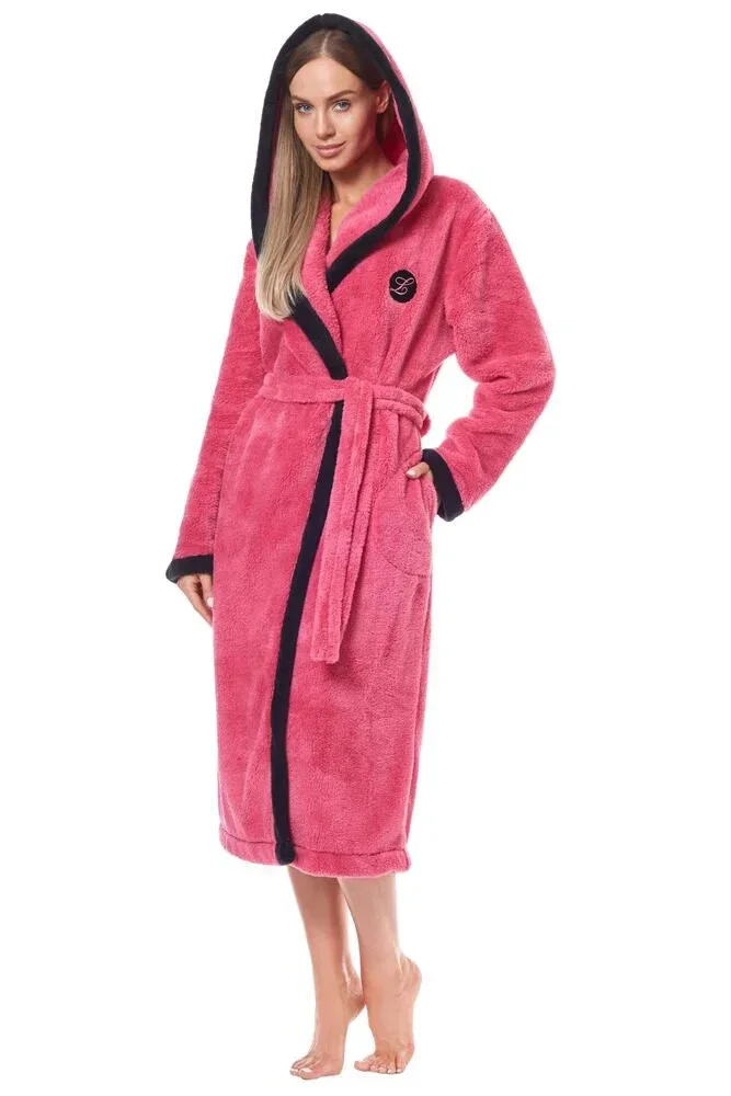Dlouhý dámský župan, který je vyrobený z měkkého materiálu typu "soft" příjemného na dotyk.