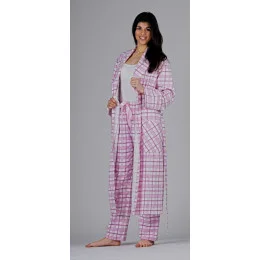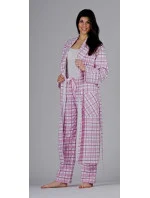 Dámský kostkovaný župan v délce pod kolena, s kapsami, páskem, se šálovým lýmcem. Barvy růžová nebo žlutá. Materiál: flanel 150g/m2