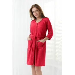 Župan je vyrobený ze 100 % bavlněného froté a má délku ke kolenům. Model má 3/4 rukávy. Na bocích jsou vnější kapsy.