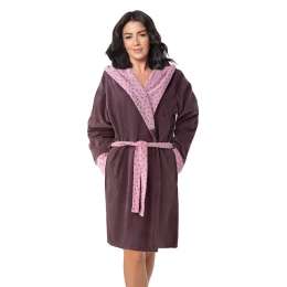 Dámský župan Dorota FR-131 J/25 je kombinací funkčnosti, pohodlí a elegantního designu. Je vyroben z vysoce kvalitní tkaniny, kterou z 80 % tvoří měkká a prodyšná bavlna a z 20 % odolný polyester, takže poskytuje teplo a odolnost. Krátký střih s praktickou kapucí je ideální pro koupání i domácí relaxaci. Model se zavazuje v pase, aby dokonale padl, a kapsy na bocích zvyšují komfort používání. Kapuce a rukávy jsou zakončeny kontrastní látkou, která dodává moderní a stylový charakter.