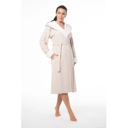Dámský župan FR-394 značky Dorota je elegantní a funkční nabídkou pro ženy, které si cení pohodlí a stylu. Je vyroben z vysoce kvalitní tkaniny (100% bavlna), je měkký, příjemný na dotek a zajišťuje tepelný komfort. Tento model delšího střihu má praktickou kapuci a pásek na zavazování v pase, který umožňuje dokonalé přizpůsobení. Rukávy a kapuci zdobí reliéfní chmýří, které dodává útulný a moderní nádech. Je ideální volbou jak po koupeli, tak pro večerní relaxaci doma.