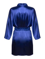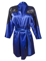 Smyslné negližé v tmavě modré barvě (modrak) z elegantního hladkého saténu, bohatě zdobené luxusní černou krajkou na ramenou a rukávech. Střih je vzdušný, klasický a krásný. Univerzální délka, do půli stehen. Složení: 100% polyester.