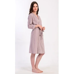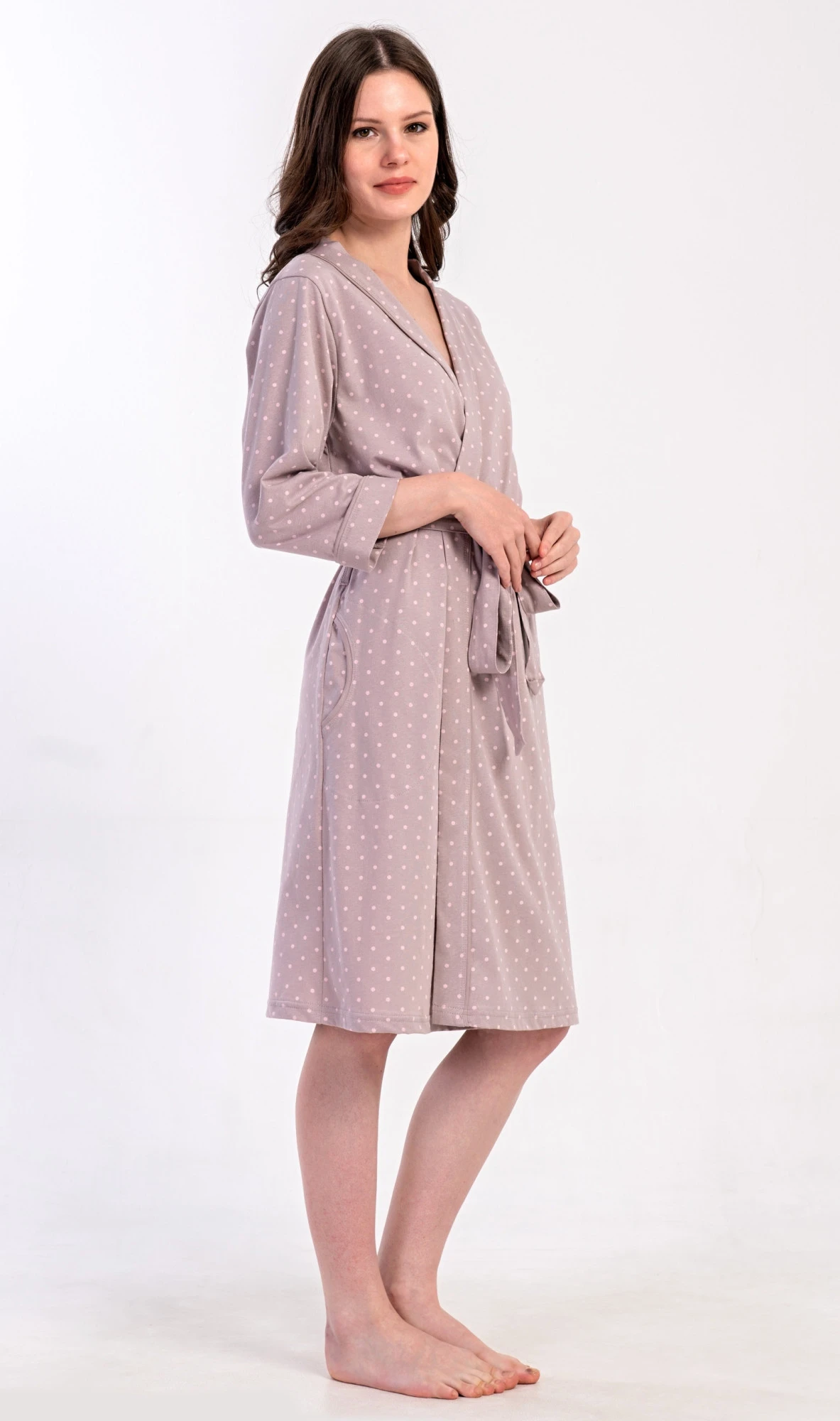 Dámský krátký bavlněný župan Adele. Dámský župánek s tříčtvrtečním rukávem a délkou pod kolena je potišten drobnými puntíky. Župan má pásek ke stažení a praktické kapsy. Použitý bavlněný materiál je příjemný a poddajný na dotek, saje a oceníte ho i po koupeli.