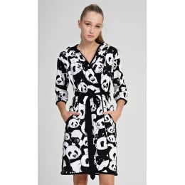 Dámský krátký župan L&L 2557 je ideální volbou pro ženy, které si cení pohodlí a praktičnosti. Je vyroben ze 100% měkkého výrazného úpletu s nadýchanou strukturou, který poskytuje příjemné zahalení a tepelný komfort. Model je vybaven praktickou kapucí, která chrání před chladem, a zavazováním v pase, které umožňuje přizpůsobení siluetě. Dlouhé rukávy zaručují teplo a kapsy na úrovni boků zvyšují funkčnost. Díky kratší délce je župan lehký, pohodlný a ideální jak po koupeli, tak pro ranní nebo večerní relaxaci doma.