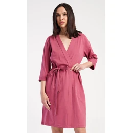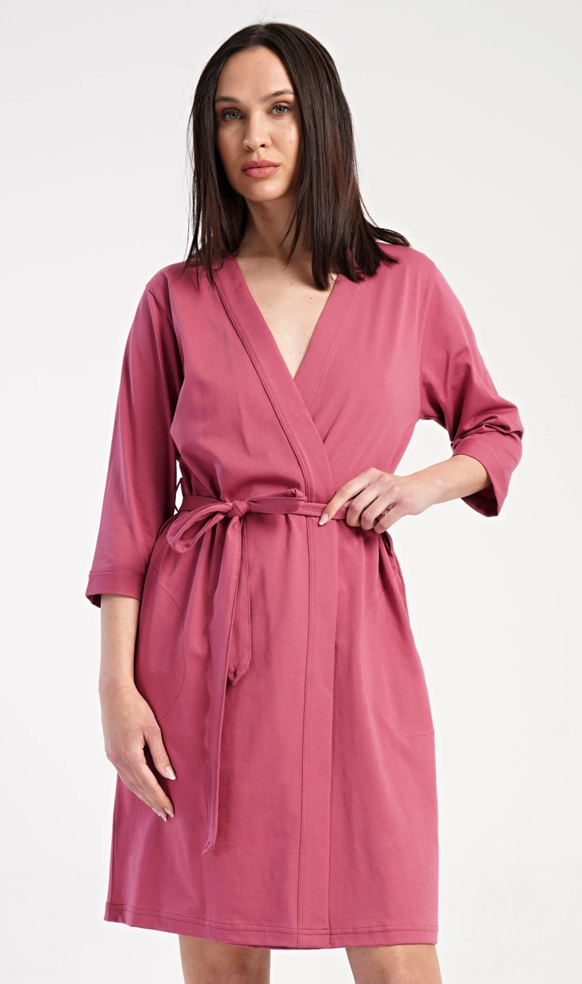 Dámský krátký bavlněný župan Madison. Dámský župánek s tříčtvrtečním rukávem a délkou po kolena má pásek ke stažení a praktické kapsy. Použitý bavlněný materiál je příjemný a poddajný na dotek, saje a oceníte ho i po koupeli.