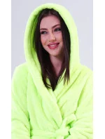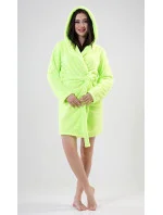 Dámský krátký softový župan s kapucí Limetka. Dámský župan s kapucí, páskem k převázání a kapsami vás zahřeje při cestě do postele, i po koupeli. Použitý softový materiál je jemný a poddajný na dotek.