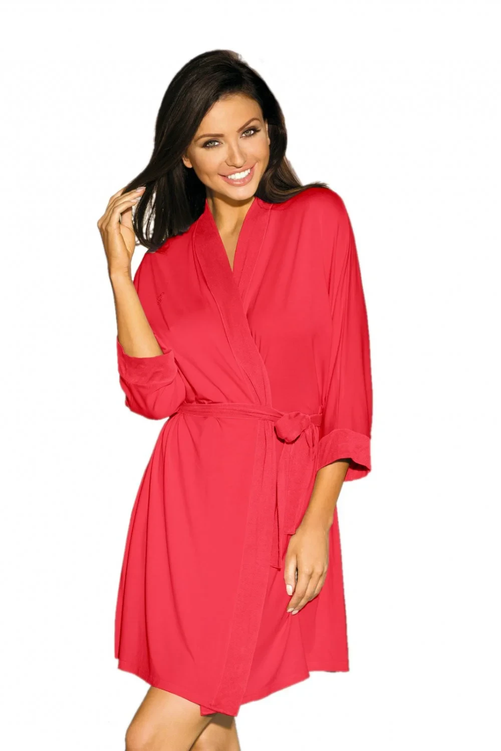 Dámský županMaya Babella - malinová barva - 3/4 rukávy - délka nad kolena - zavazování na pásek