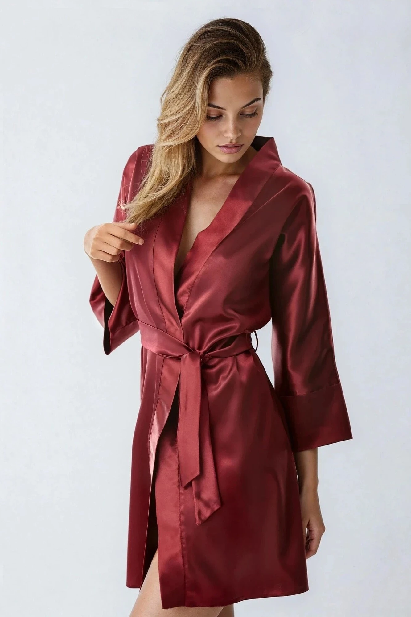 Krásný župan z jemného saténu je povinnou součástí šatníku každé ženy. Nenahraditelný v jakékoli situaci. Rukávy, které umožňují nosit je dvěma způsoby: s ohrnutými manžetami nebo s jednoduchým rukávem. Jednoduchý krátký saténový župan obdivuje svou elegancí. Panama je zabalena v elegantní velké krabici, takže pokud hledáte nápady na dárky - je to ideální řešení.