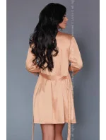 Originální krátký župan v teplém meruňkovém odstínu. Kombinace průsvitného úpletu a hladkého spodního dílu vytváří výrazný efekt, na ramenou jsou barevné jemné potisky a v pase sladká mašlička, která zeštíhluje pas, dodává nádech romantiky.