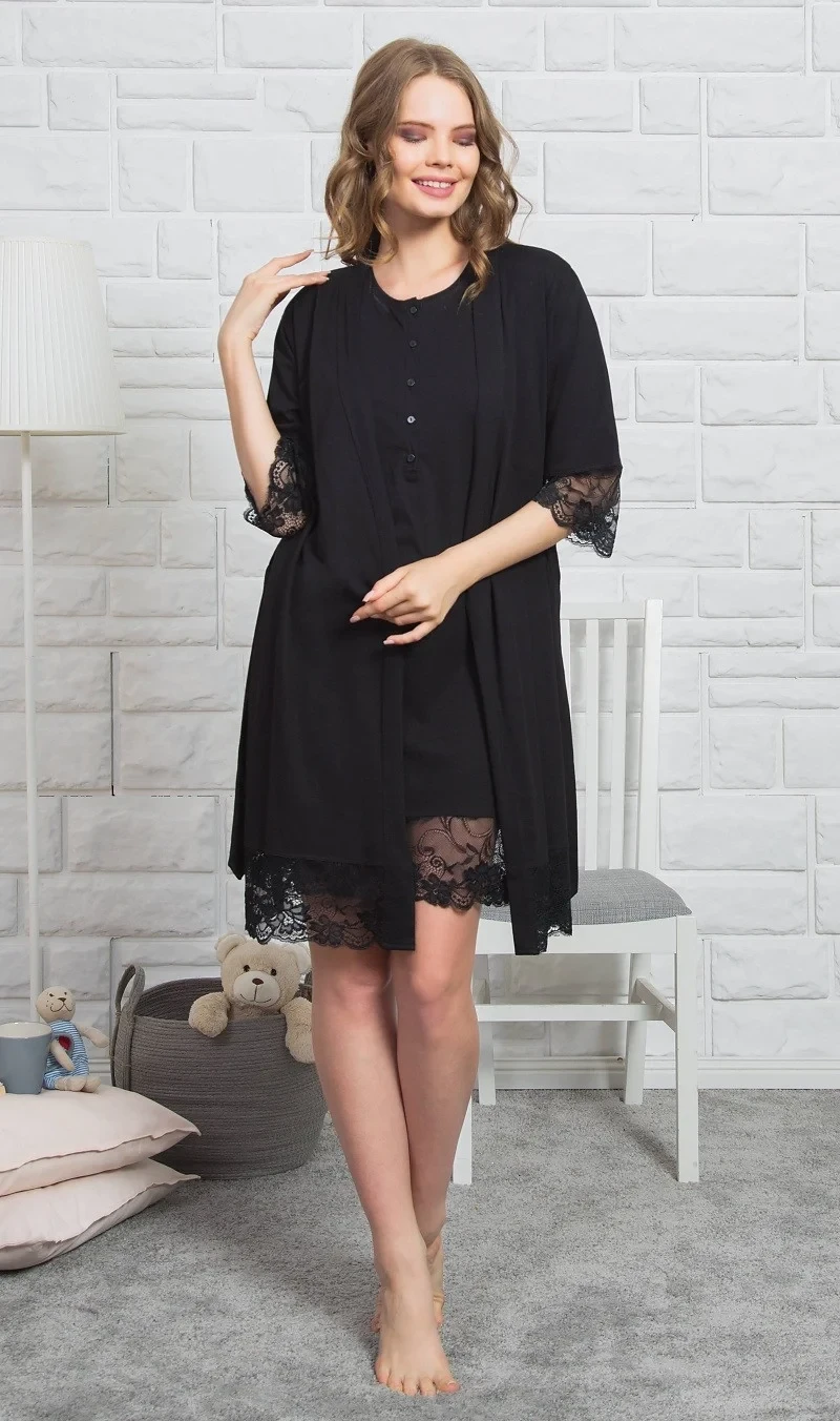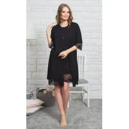 Dámský bavlněný župan s noční košilí Adéla. Pohodlný a přitom sexy komplet se skládá z noční košile a župánku. Košile má légu rozepínací na knoflíky a je zakončena krajkou. Stejná krajka je použita i na rukávech a spodním lemu županu. Použitý bavlněný materiál je příjemný a poddajný na dotek.