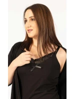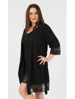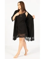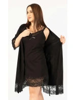 Dámský župan s noční košilí na ramínka Laura. Komplet se skládá z noční košile na ramínka a župánku s páskem ke stažení a tříčtvrtečním rukávem. Výstřih, rukávy a spodní lemy jsou ozdobené širokou krajkou. Použitý bavlněný materiál je příjemný a poddajný na dotek.