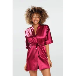 Exkluzivní negližé, zavazování v pase, hladké, elegantní, ženské, kimonové rukávy, délka po lokty, stojí za to mít. 100% polyester.