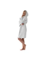 Dámský župan je klasického střihu s kapucí, zavazováním na pásek.