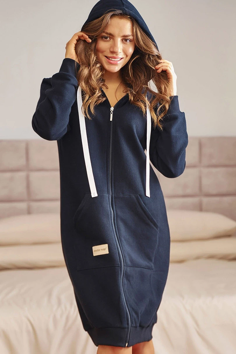Dámský župan Doctor Nap SMZ.4136 v sobě spojuje pohodlí, funkčnost a módní styl. Je vyroben ze 100% vysoce kvalitní, dvojitě předené bavlny, je mimořádně měkký, hřejivý a příjemný na dotek. Model ve stylu mikiny má zapínání na zip, díky čemuž je praktický a pohodlný pro každodenní nošení. Je vybaven prostornými kapsami a ozdobnými pásky s logem Doctor Nap a dokonale kombinuje sportovní charakter s elegantním zpracováním. Je udržován v jedné z nejmódnějších barev sezóny, takže bude ideální volbou jak po koupeli, tak pro domácí relaxaci. Je vyroben s maximální péčí, takže zaručuje odolnost a pohodlí po dlouhá léta.