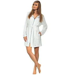 Dámský župan Zappa cream L&L - krémová barva - z bambusového vlákna - hebký materiál se vzorem drobných hvězdiček - má krásný sametový vzhled - zapínání na zip - zavazování v pase na pásek - s kapucí