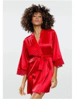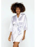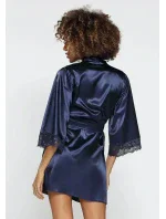 Model má dlouhé rukávy a v pase se zavazuje. Manžety rukávů jsou ozdobené efektní krajkou s květinovým motivem.