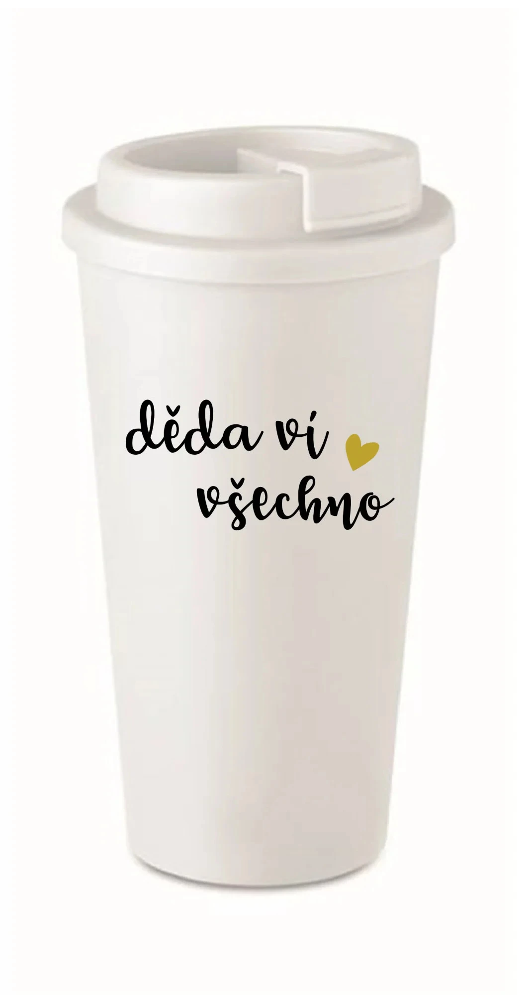 DĚDA VÍ VŠECHNO - bílý termohrnek 475 ml