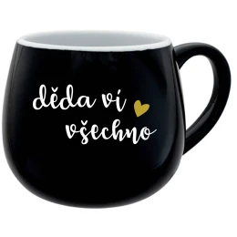 DĚDA VÍ VŠECHNO - černý keramický hrníček 300 ml