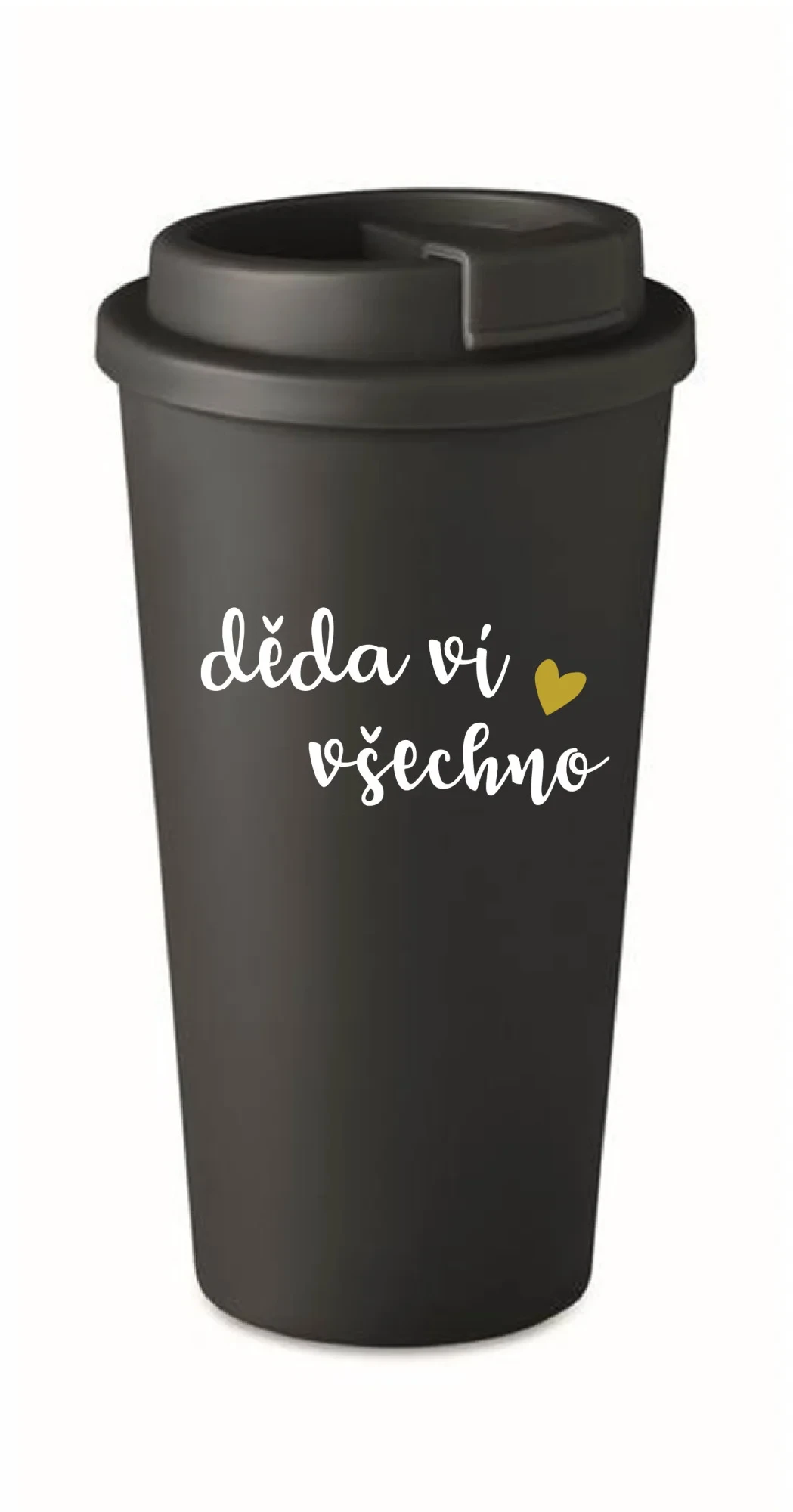 DĚDA VÍ VŠECHNO - černý termohrnek 475 ml