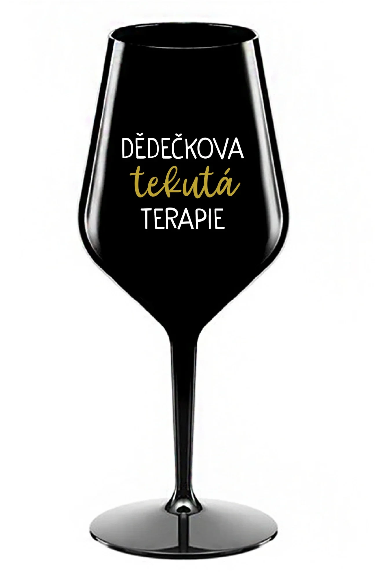 DĚDEČKOVA TEKUTÁ TERAPIE - černá nerozbitná sklenice na víno 470 ml