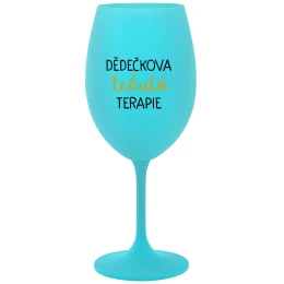 DĚDEČKOVA TEKUTÁ TERAPIE - tyrkysová sklenice na víno 350 ml