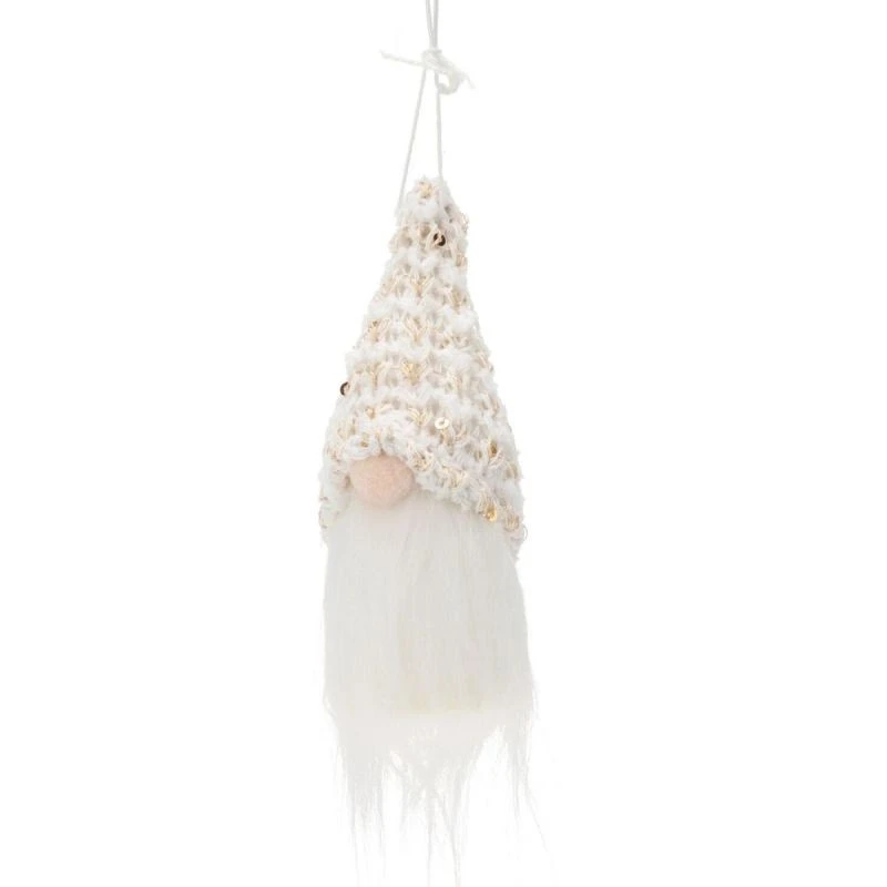 DEKORAČNÍ PŘÍVĚSEK SANTA CLAUS 11CM FLITRY BÍLÝ