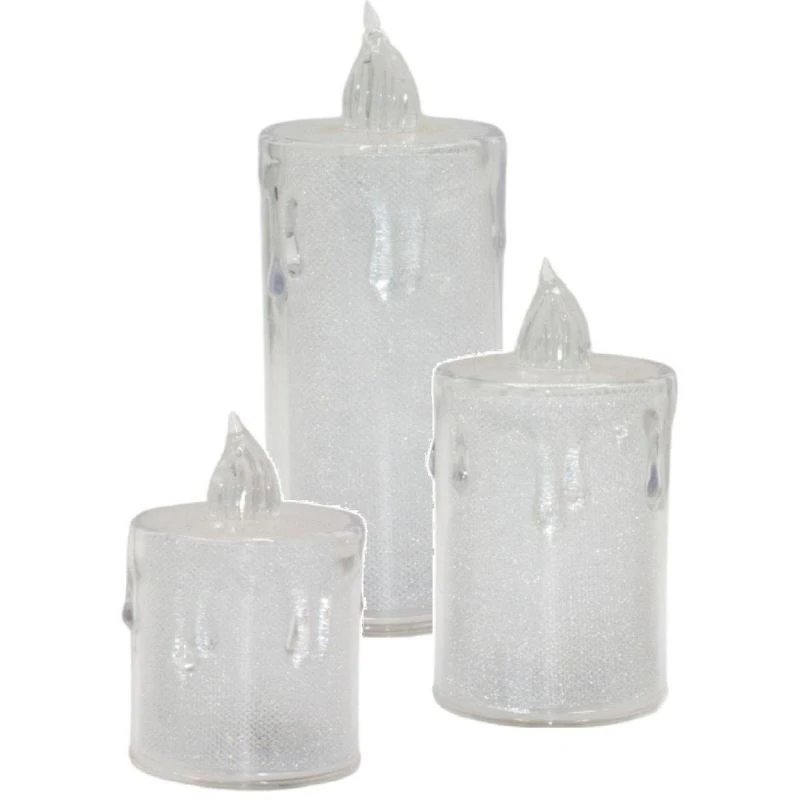 DEKORATIVNÍ SVÍČKA 3 KS TRANSPARENTNÍ TEPLÁ BÍLÁ 1 LED