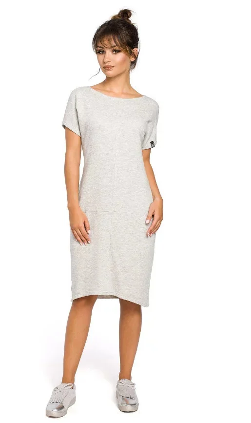 Pohodlné šaty volného střihu z jemného žebrovaného úpletu s krátkými rukávy a kulatým výstřihem.