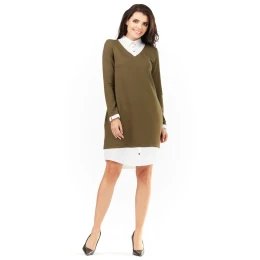 Šaty rovného střihu s dlouhými rukávy. Šaty s vložkami z bílé látky. Skvěle se hodí pro mnoho příležitostí.