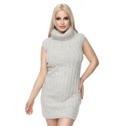 Pletené mini šaty bez rukávů. Šaty s širokým žebrovaným vzorem. Šaty mají rolák. Zajímavý střih ideální pro mnoho příležitostí.