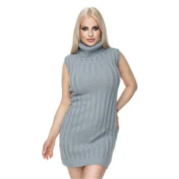 Pletené mini šaty bez rukávů. Šaty s širokým žebrovaným vzorem. Šaty mají rolák. Zajímavý střih ideální pro mnoho příležitostí.