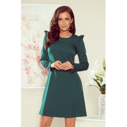Trapézové šaty s volánky na ramenou a dlouhými rukávy. Vyrobeno z tkaniny příjemné na dotek. Značka numoco.