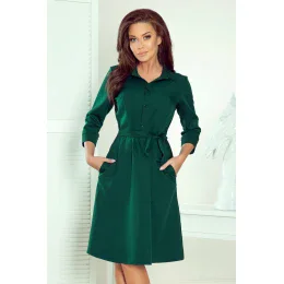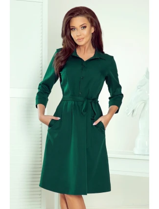 Košilové šaty v lahvově zelené barvě. Vyrobeno z materiálu příjemného na dotek s nízkou elasticitou (95 % polyester, 5 % elastan). Značka numoco.