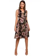 Elegantní šaty z žebrovaného šifonu s květinovým vzorem. Díky hlubokému výstřihu a ozdobnému pásku s nášivkou budete vypadat úžasně při mnoha příležitostech. Šaty mají skrytý zip a podšívku.